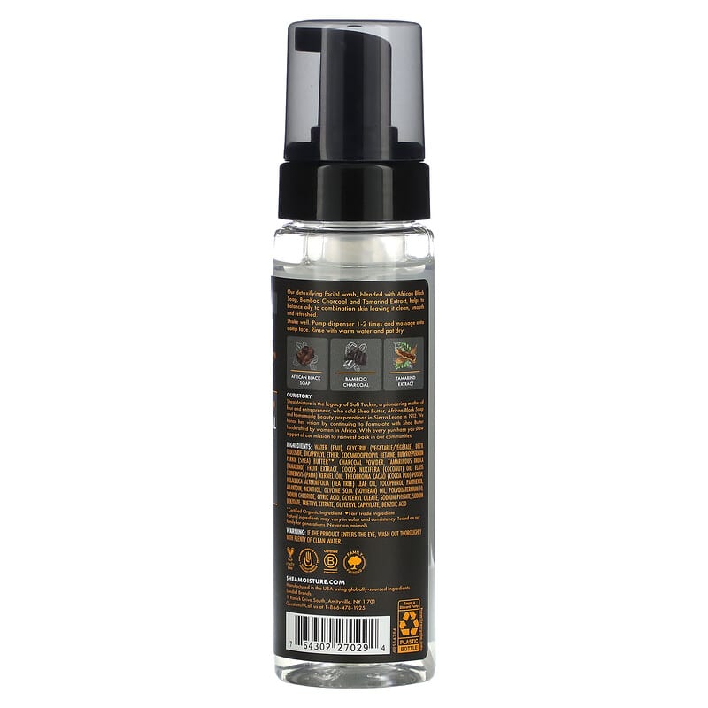 Inform when this item available: SheaMoisture, African Black Soap, Bamboo Charcoal Detoxifying Foaming Facial Wash w/ Tamarind Extract, 7.5 fl oz (222 ml) - 221.8 ml / 0.29 / 0.65
