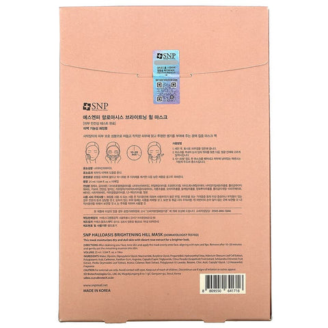 Inform when this item available: SNP, Halloasis, Brightening Hill Beauty Sheet Mask, 10 Sheets, 0.84 fl oz (25 ml) Each - 10 Count / 0.34 / 0.745