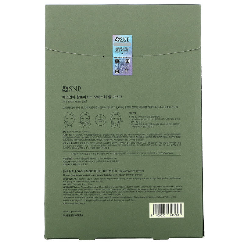 Inform when this item available: SNP, Halloasis, Moisture Hill Beauty Sheet Mask, 10 Sheet Masks, 0.84 fl oz (25 ml) each - 10 Count / 0.34 / 0.745