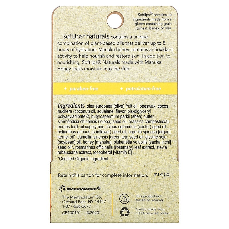 Inform when this item available: Softlips, Naturals Lip Balm with Manuka Honey, Honey Mint, 2 Sticks, 0.15 oz (4.2 g) Each - 2 Count / 0.02 / 0.055