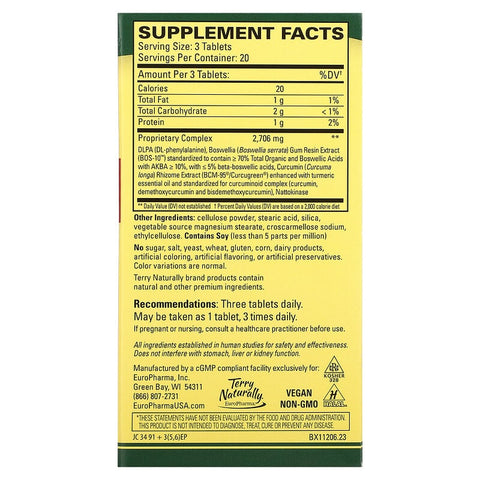 Terry Naturally, Curamin, Pain Relief, 60 Tablets - 60 Count / 0.14 / 0.3