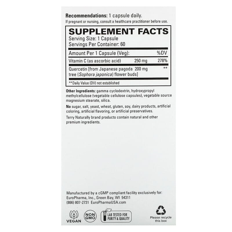 Inform when this item available: Terry Naturally, Quercetin with Vitamin C, 60 Capsules - 60 Count / 0.09 / 0.2
