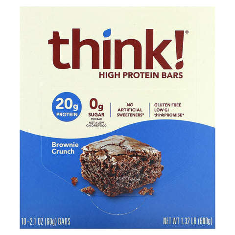 Inform when this item available: Think !, High Protein Bars, Brownie Crunch, 10 Bars, 2.1 oz (60 g) Each - 10 Count / 0.66 / 1.45