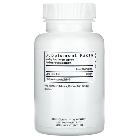 Inform when this item available: Vital Nutrients, Lipoic Acid, 60 Vegan Capsules (300 mg per Capsule) - 60 Count / 0.07 / 0.15
