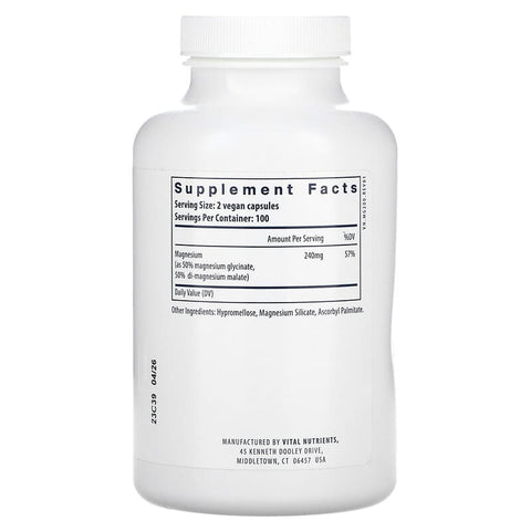 Inform when this item available: Vital Nutrients, Magnesium, Glycinate + Malate, 200 Vegan Capsules (120 mg per Capsule) - 200 Count / 0.23 / 0.5