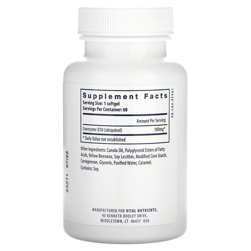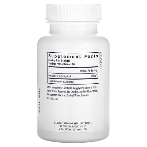 Vital Nutrients, Ubiquinol CoQ10, 100 mg, 60 Softgels - 60 Count / 0.07 / 0.15